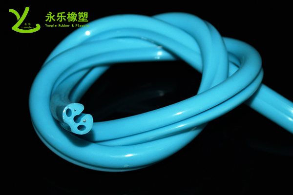 雙色硅膠管是由雙模頭雙模具擠出,就單從備料開始就與普通單色的硅膠管有很大的區(qū)別了。值得注意的是在備料過程中請勿將兩種顏色的原料混煉到一起,否則擠出的就是不規(guī)則的雙色硅膠管了。