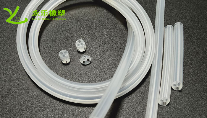 雙色硅膠管是由雙模頭雙模具擠出,就單從備料開始就與普通單色的硅膠管有很大的區(qū)別了。值得注意的是在備料過程中請勿將兩種顏色的原料混煉到一起,否則擠出的就是不規(guī)則的雙色硅膠管了。