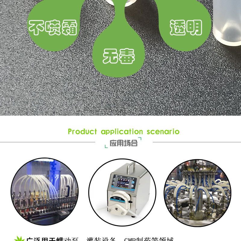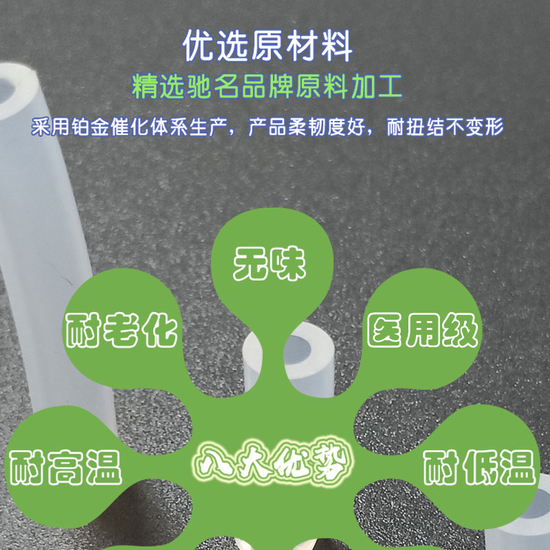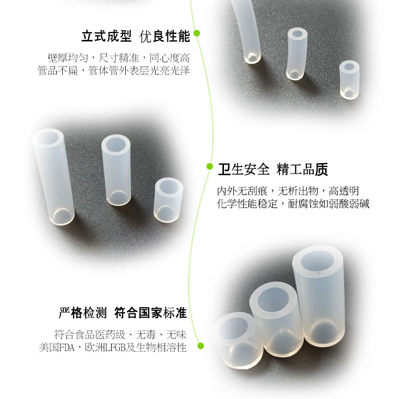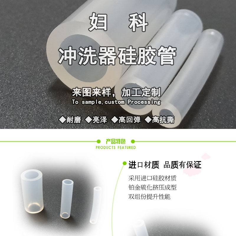 婦科沖洗器硅膠管:進(jìn)口硅膠原材料,管口程圓形,形變小析出物少,壁厚均勻,化學(xué)性能穩(wěn)定,耐試劑性能良好,可耐弱酸弱堿、耐化學(xué)試劑藥液酒精等;耐溫范圍廣-50~+260℃,適應(yīng)高低溫設(shè)備需求。常規(guī)PE袋+紙箱包裝,特殊包裝可按客戶標(biāo)準(zhǔn);產(chǎn)品符合SGS、FDA、LFGB、生物相溶性等;用于灌裝機(jī)器、氣壓食品機(jī)、生物制藥、醫(yī)療引流等。