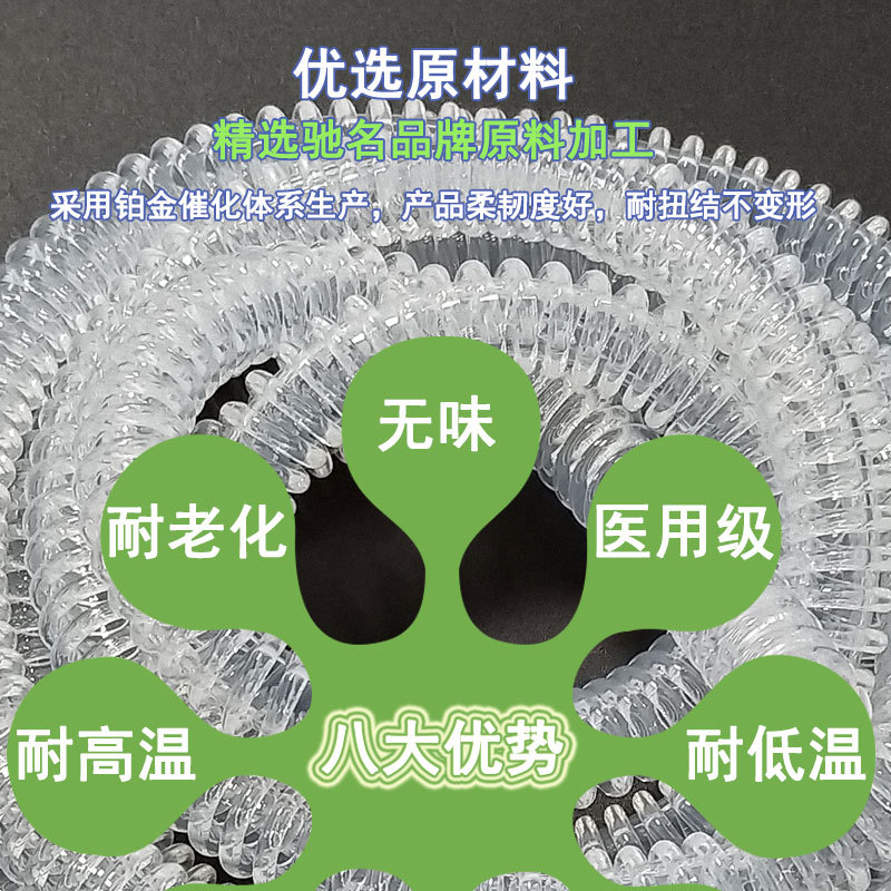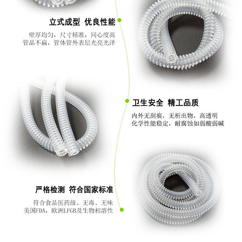 波紋硅膠管:采用進(jìn)口硅膠原材料,連續(xù)擠出一次成型,內(nèi)壁平滑;常規(guī)硬度60度(邵氏硬度20-80度);耐溫范圍廣(-50~+280℃),可以適應(yīng)高、低溫設(shè)備需求,并耐老化。常規(guī)PE袋+紙箱包裝,特殊要求可按客戶標(biāo)準(zhǔn);產(chǎn)品符合SGS、FDA、LFGB、生物相溶性等;用于醫(yī)用設(shè)備、麻醉機(jī)、機(jī)械連接、食品傳送設(shè)備等。