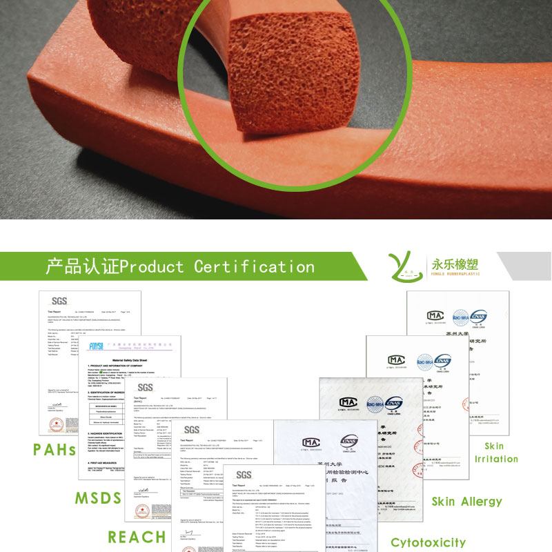 產(chǎn)品認(rèn)證:發(fā)泡條類可達(dá)到食品FDA,發(fā)泡板ROHS等