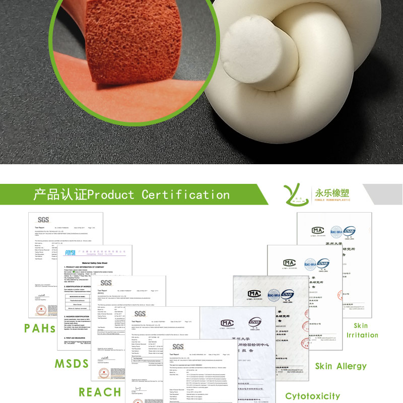 產(chǎn)品認(rèn)證:發(fā)泡條類(lèi)可達(dá)到食品FDA,發(fā)泡板ROHS等