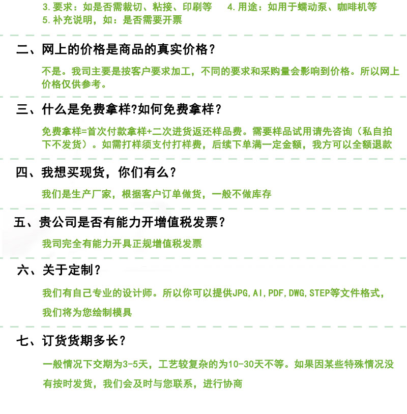 產(chǎn)品硬度 | 20-80A | 打樣時(shí)間 | 7天內(nèi) | 產(chǎn)品樣板 | 現(xiàn)樣免費(fèi) |