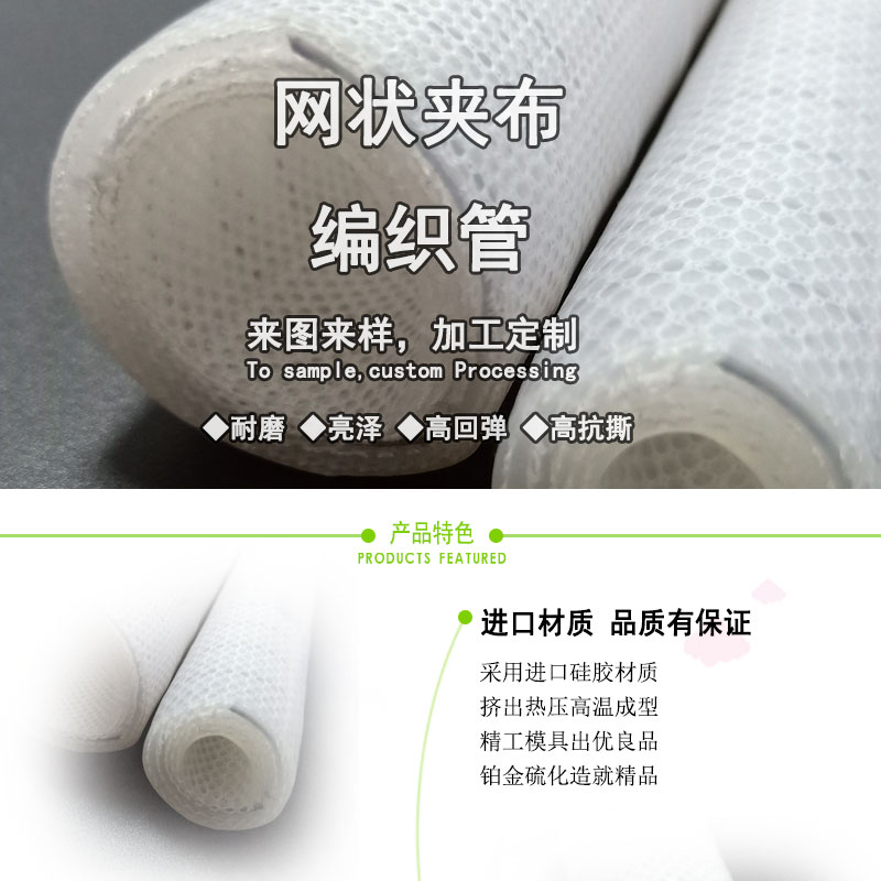 編織硅橡膠制品產(chǎn)品名稱(chēng):網(wǎng)狀?yuàn)A布編織管