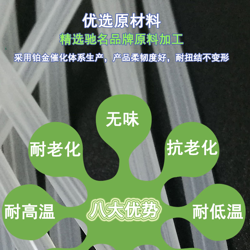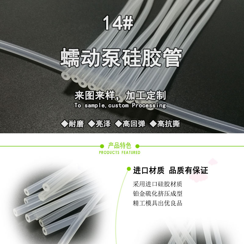 14#蠕動(dòng)泵硅膠管:采用進(jìn)口硅膠原材料,一體式成型,內(nèi)壁平滑;硬度60度(邵氏硬度值30-90度);耐溫范圍廣(-50~+280℃),可以適應(yīng)高、低溫設(shè)備需求,并耐老化,耐磨。常規(guī)PE袋+紙箱包裝,特殊要求可按標(biāo)準(zhǔn);符合SGS、FDA、LFGB、生物相溶性等;用于灌裝機(jī)、蠕動(dòng)泵專用、醫(yī)療醫(yī)用器械、輸液泵等。