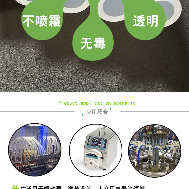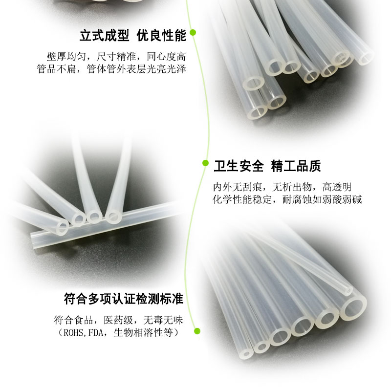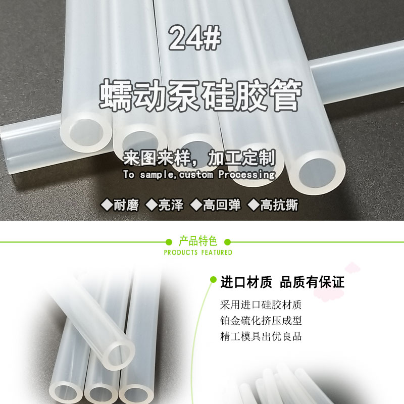 24#蠕動(dòng)泵硅膠管:采用進(jìn)口硅膠原材料,壁厚均勻析出物少,化學(xué)性穩(wěn)定,可耐弱酸弱堿、耐化學(xué)試劑、藥液酒精等,可通過(guò)細(xì)胞毒性測(cè)試標(biāo)準(zhǔn);常規(guī)硬度60度(邵氏硬度值20-80度)。常規(guī)PE袋+紙箱包裝,特殊要求可按客戶標(biāo)準(zhǔn);產(chǎn)品符合SGS、FDA、LFGB、生物相溶性等;用于灌裝機(jī)、蠕動(dòng)泵專用、醫(yī)療醫(yī)用器械、輸液泵等。