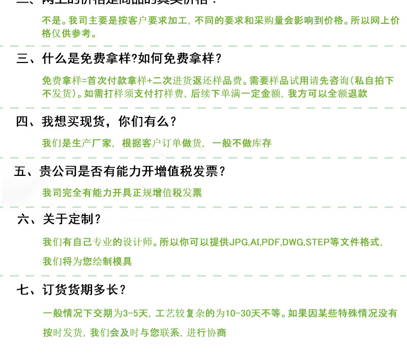 產(chǎn)品硬度 | 30-90A | 打樣時間 | 7天內(nèi) | 產(chǎn)品樣板 | 現(xiàn)樣免費 |