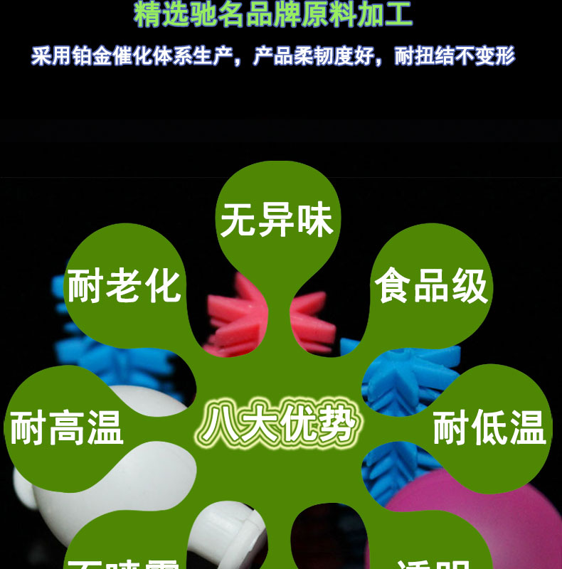 采用進口硅膠材料,模壓成型,內壁平滑,壁厚均勻;常規(guī)60度(邵氏硬度值20-80度);耐溫范圍廣(-50~+280℃),可以適應高、低溫設備需求,并耐老化。常規(guī)PE袋+紙箱包裝,特殊要求可按客戶標準;產品符合SGS、FDA、LFGB、生物相溶性等;用于灌裝機、蠕動泵專用、醫(yī)療醫(yī)用器械、輸液泵等。