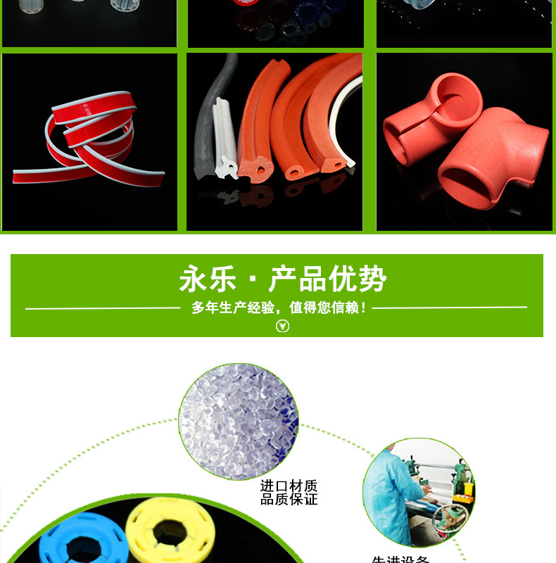 醫(yī)療硅橡膠制品廠家名稱 | 永樂橡塑 | 產(chǎn)品材質(zhì) | 硅橡膠 | 產(chǎn)品耐溫 | -50~220 |