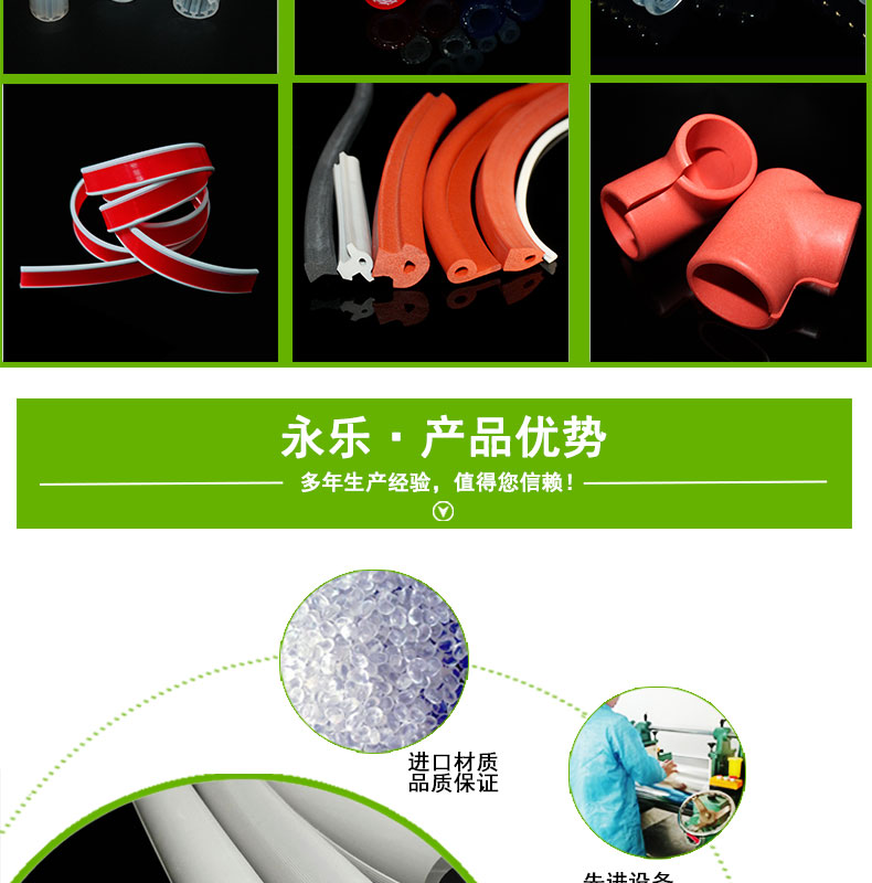 擠出硅橡膠制品廠家名稱(chēng) | 永樂(lè)橡塑 | 產(chǎn)品材質(zhì) | 硅橡膠 | 產(chǎn)品耐溫 | -50~280 |