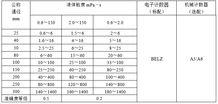 流量計一般按以下配置出廠,見下表中配套計數(shù)器型號及性能參數(shù)。