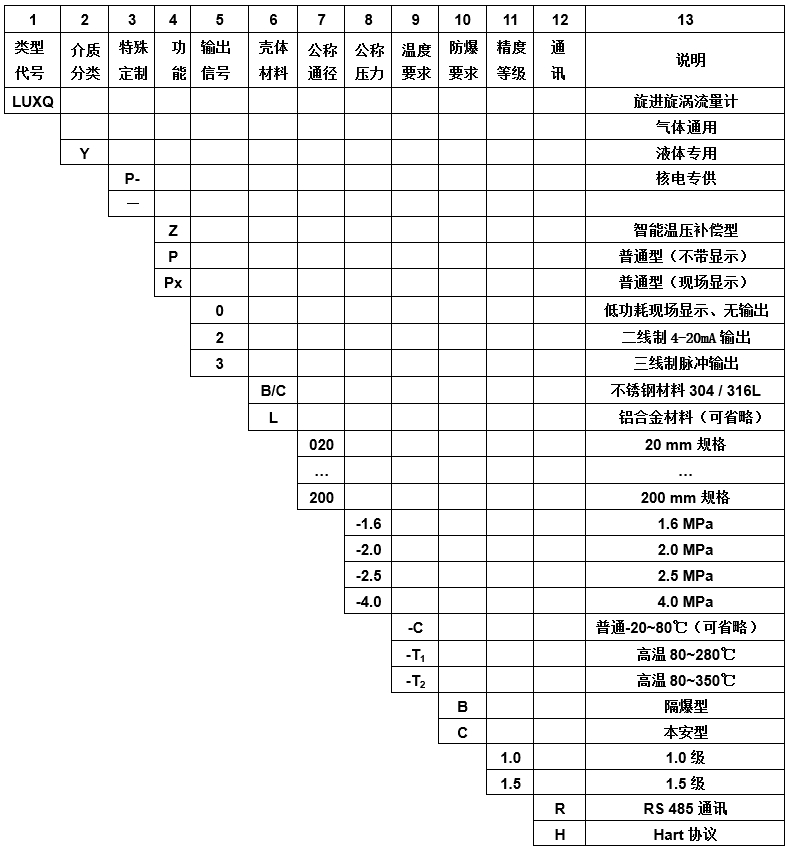 ■旋進(jìn)旋渦流量計(jì)產(chǎn)品型號(hào)標(biāo)記