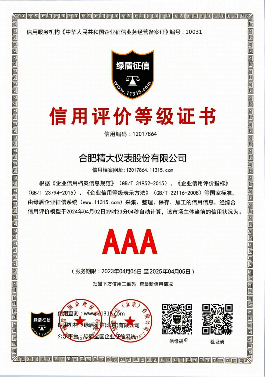 信用評(píng)價(jià)等級(jí)證書