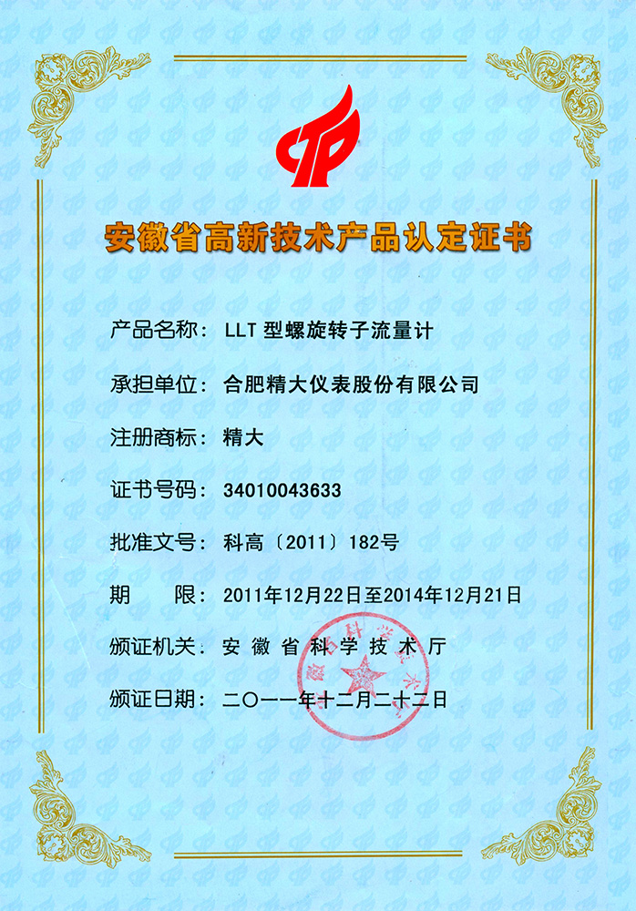 省高新技術(shù)產(chǎn)品認(rèn)定證書(LLT雙轉(zhuǎn)子)