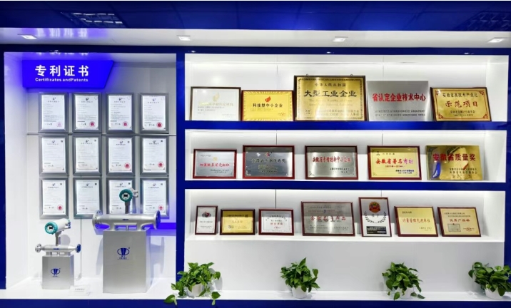 榮譽墻上,金光閃閃的獎牌和專利證書,無聲地訴說著合肥精大儀表在流量計領(lǐng)域的卓越成就。“大型工業(yè)企業(yè)”、“安徽省著名商標”、“安徽省質(zhì)量獎”、“安徽省專精特新企業(yè)”、“安徽省專利優(yōu)秀獎”、等一項項殊榮,是對合肥精大儀表始終堅持科技創(chuàng)新、追求卓越品質(zhì)的最佳褒獎。數(shù)十項國家專利,更是彰顯了企業(yè)在核心技術(shù)領(lǐng)域的強大實力。