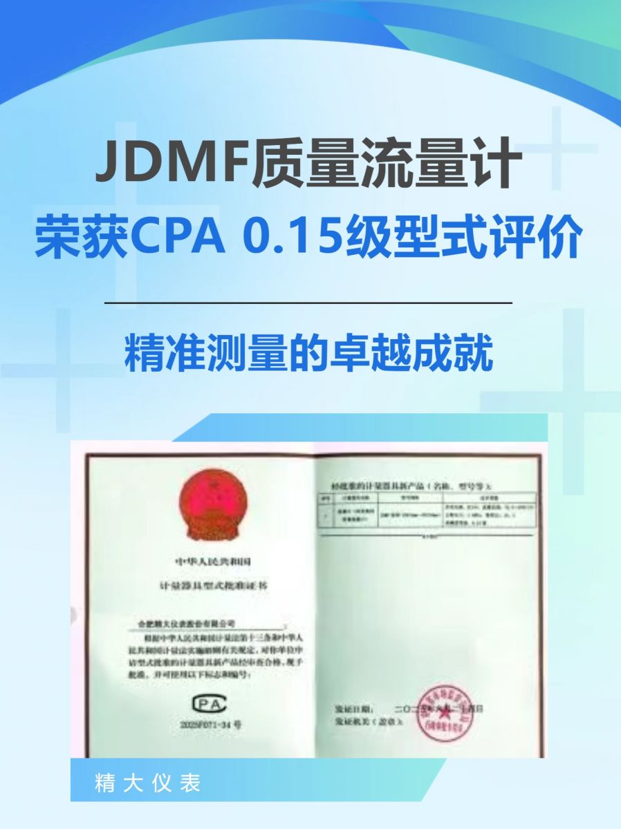 JDMF質(zhì)量流量計(jì)榮獲CPA 0.15級(jí)型式評(píng)價(jià):精準(zhǔn)測(cè)量的卓越成就